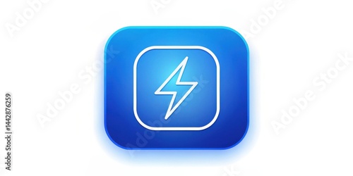 Blue Square Button with White Lightning Bolt Icon Representing Power and Speed