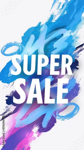 blue SUPER SALE text on white background , retail promotions, discount events and social media marketing Big sale offer.