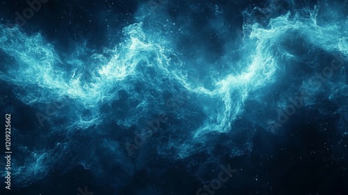 Blue teal glowing gradient wave on dark background, retro noise texture header, Generative AI
