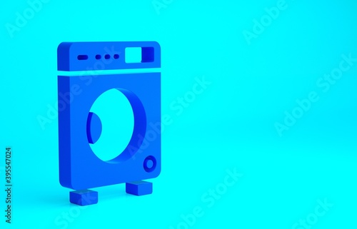 Blue Washer icon isolated on blue background. Washing machine icon. Clothes washer - laundry machine. Home appliance symbol. Minimalism concept. 3d illustration 3D render.
