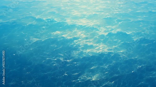 Blue Water Surface with Sun Glare.