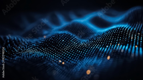 Blue wave with dots on it. The dots are small and scattered throughout the wave. The image has a futuristic