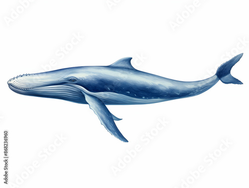 Blue Whale in white background, blue Whale isolated Raster object, 3D blue whale illustration