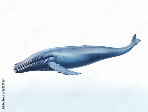 Blue Whale in white background, blue Whale isolated Raster object, 3D blue whale illustration