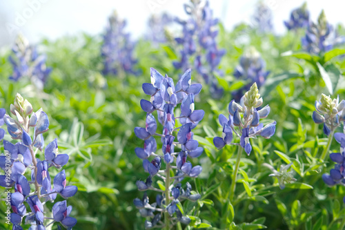 Bluebonnet field in bloom with purple flowers, shows flower in nature during spring.