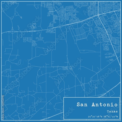 Blueprint US city map of San Antonio, Texas.