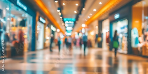 Blurred background featuring people engaging in shopping activities at a vibrant shopping center. This shopping center showcases a beautiful interior, inviting visitors to walk through the shops.