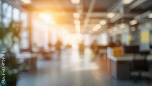 Blurred city workspace background with sunlight and bokeh highlights