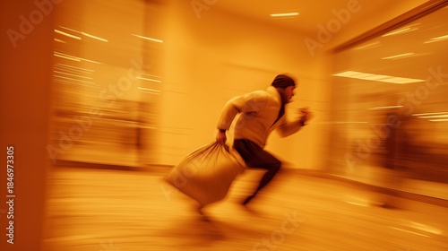 Blurred Figure Running With Heavy Sack