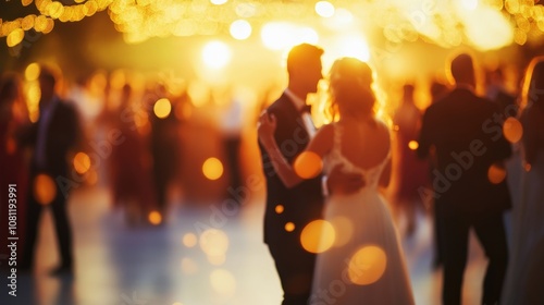 Blurred Silhouette of Bride and Groom Dancing at a Wedding Reception