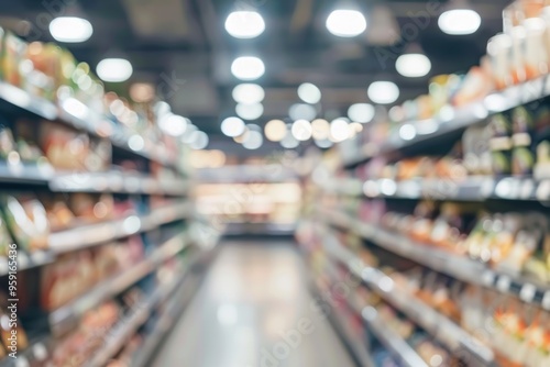 Blurred supermarket interior with bokeh effect, creating a calm shopping vibe.