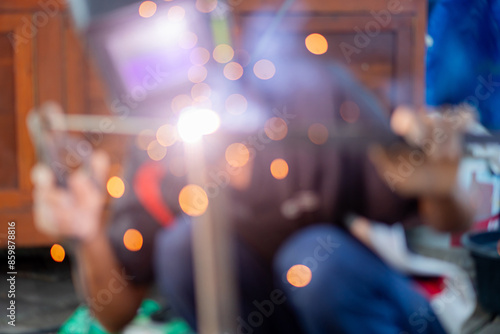 Blurred Welding with Sparks and Bokeh Effect