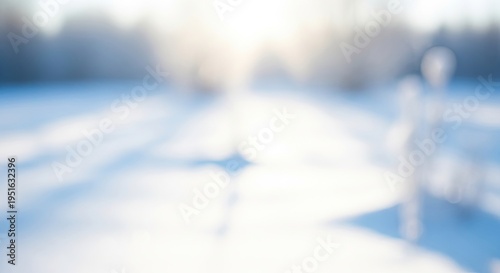 Blurred Winter Landscape with Sun Flare and Snow.
