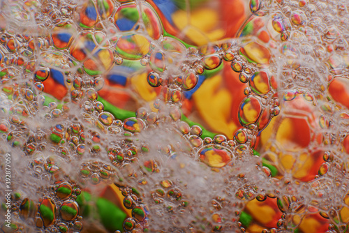 blurry abstract background of colored soap bubbles in water