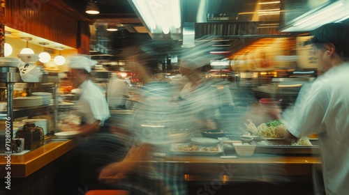 Blurry Photo of a Busy Restaurant Kitchen in Action