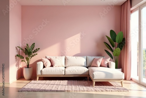 Blush pink living room, minimalist decor Ample copy space , cozy, background