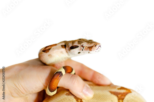 Boa constrictor imperator salmon. Exotic animals in the human environment. Snake isolated on a white background.
