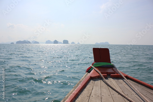 Boat heading toward the islands on the horizon