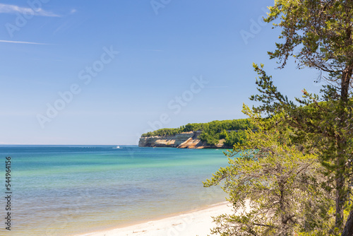 Boat on Coastline of Pictured Rocks National Lakeshore, Upper Peninsula, Munising, Michigan
