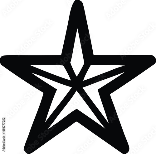 Bold black five-pointed star symbol simple geometric shape bold outline decorative element for design projects