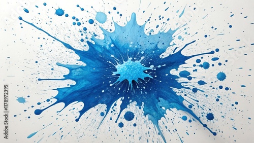 Bold Blue Splatter Paint Background on White Canvas