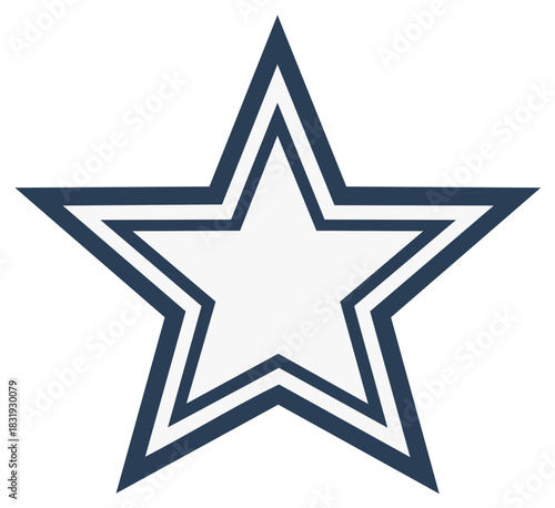 Bold five point star vector graphic featuring a double layered navy blue outline design