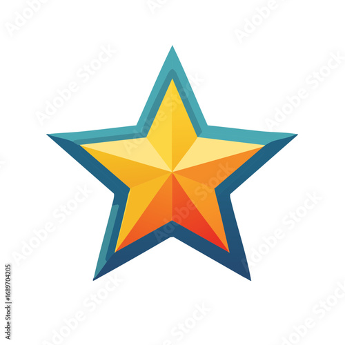 Bold Five Point Star with Radiant Yellow and Orange Gradient Accents on a Blue Border