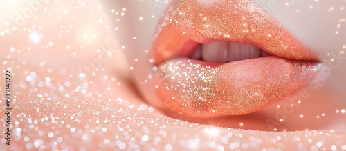 Glossy Pink Lips Pattern on Abstract Background