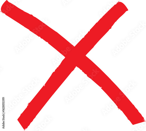 Bold Red X Mark: Grunge Texture, Rejection, Cancellation, Negative Symbol