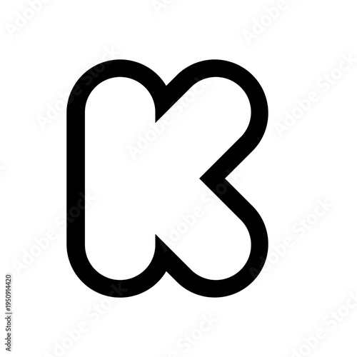 Bold rounded bubble letter K outline icon with smooth curves, modern minimal typography symbol perfect for branding, logo design, kids fonts, playful UI elements and creative alphabet visuals.