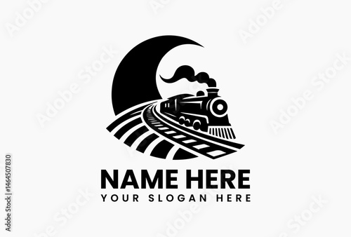 Bold Train on Railway Graphic. Efficient Travel Vector Logo Design