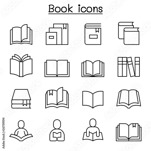 Book, Learning, Reading & education icon set in thin line style