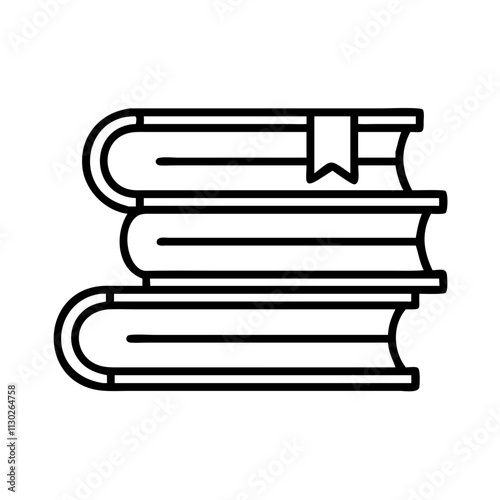 book stack with bookmark icon, book day line art, book day icon - simple black line art icon of book stack with bookmark, for book day celebrations. book day vector art.