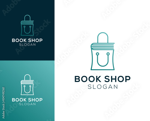 Bookshop logo. Book with shopping bag vector logo design.