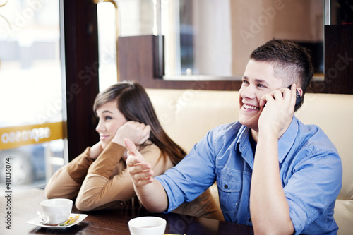 on the phone,