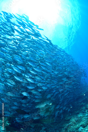 マレーシア、Borneo、sipadanのギンガメアジの群