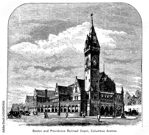 Boston city. Engraving illustration