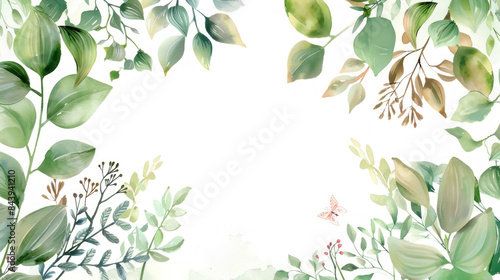 Botanical Greenery Border, Elegant Wedding Invitation, Lush Foliage, Nature Theme
