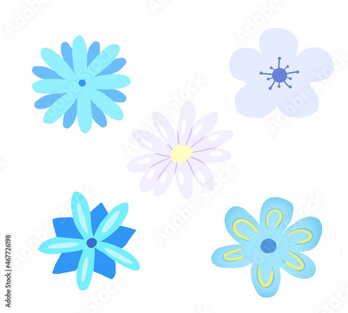 Botanical set of garden floral plants Set of flowers Set of floral elements Flower and green leaves.