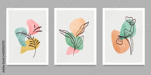 Botanical wall art on set. Abstract geometric elements, shapes and plant art for print, cover, wallpaper . Vector illustration