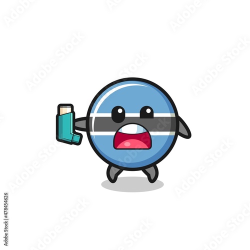 botswana flag mascot having asthma while holding the inhaler