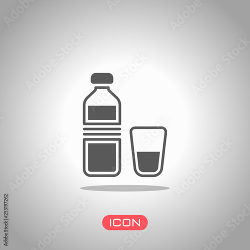 bottle of water and glass cup. simple icon. Icon under spotlight. Gray background
