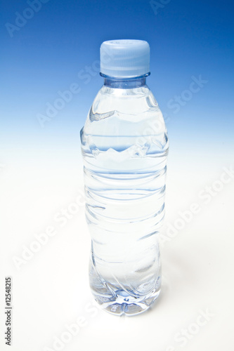 Bottled water on a graduated blue studio background.