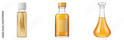 Bottles with Clear Liquids and Extracts Isolated on transparent background