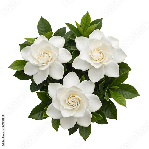 Bouquet of White Gardenia Flowers isolated on transparent background, png