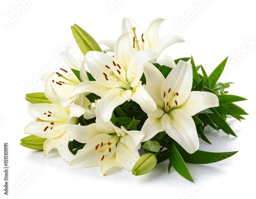 Bouquet of white lilies on white background