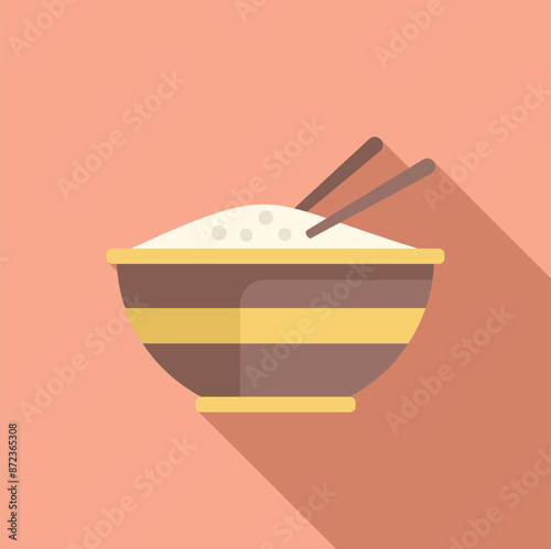 Bowl full of cooked white rice with chopsticks resting on top in flat design