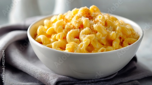 Bowl of Creamy Macaroni and Cheese on a Cloth Napkin