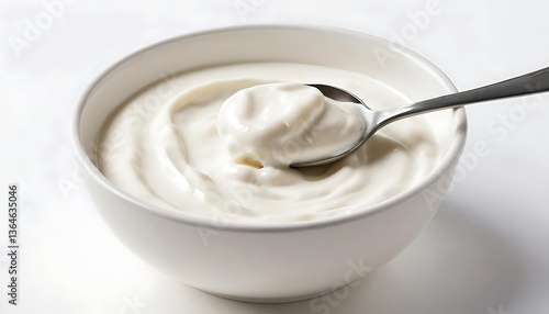 Bowl of Creamy Yogurt with Spoonful, Perfect for Healthy Snack