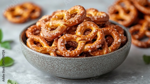 Bowl of salted mini pretzels.